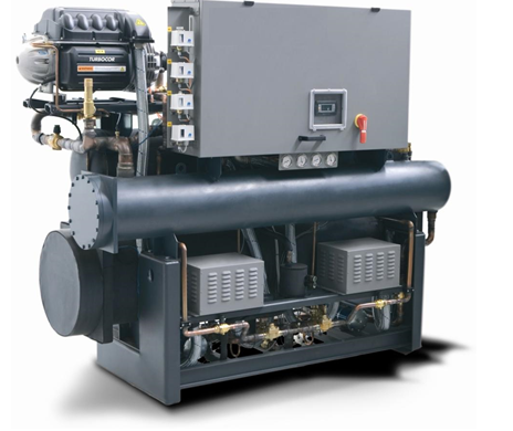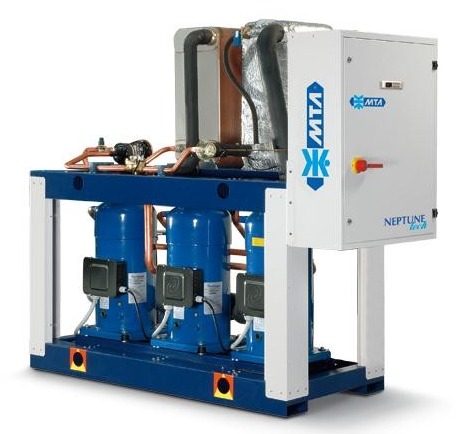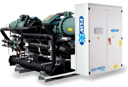 - Wassergekühlte Kaltwassersysteme und WP für Innenaufstellung